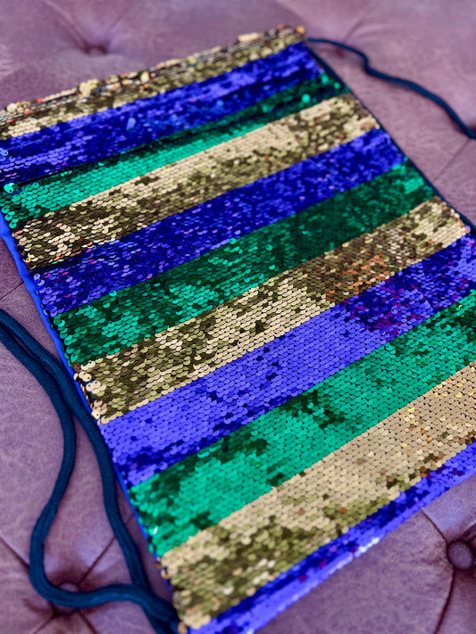 Mardi Gras Striped Sequin Drawstring Bag