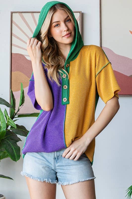 MARDI GRAS RIB COLOR BLOCK HOODIE shirt
